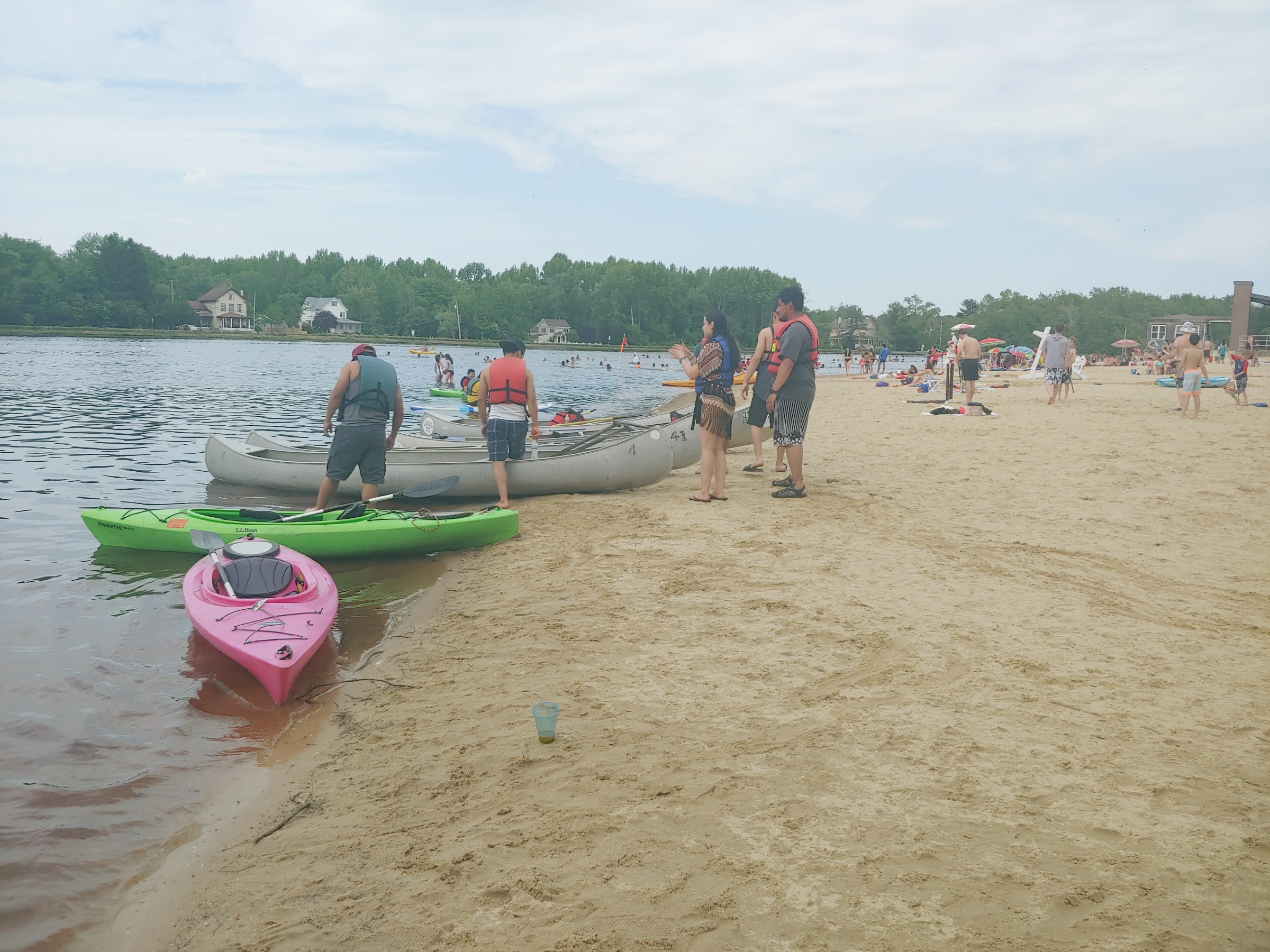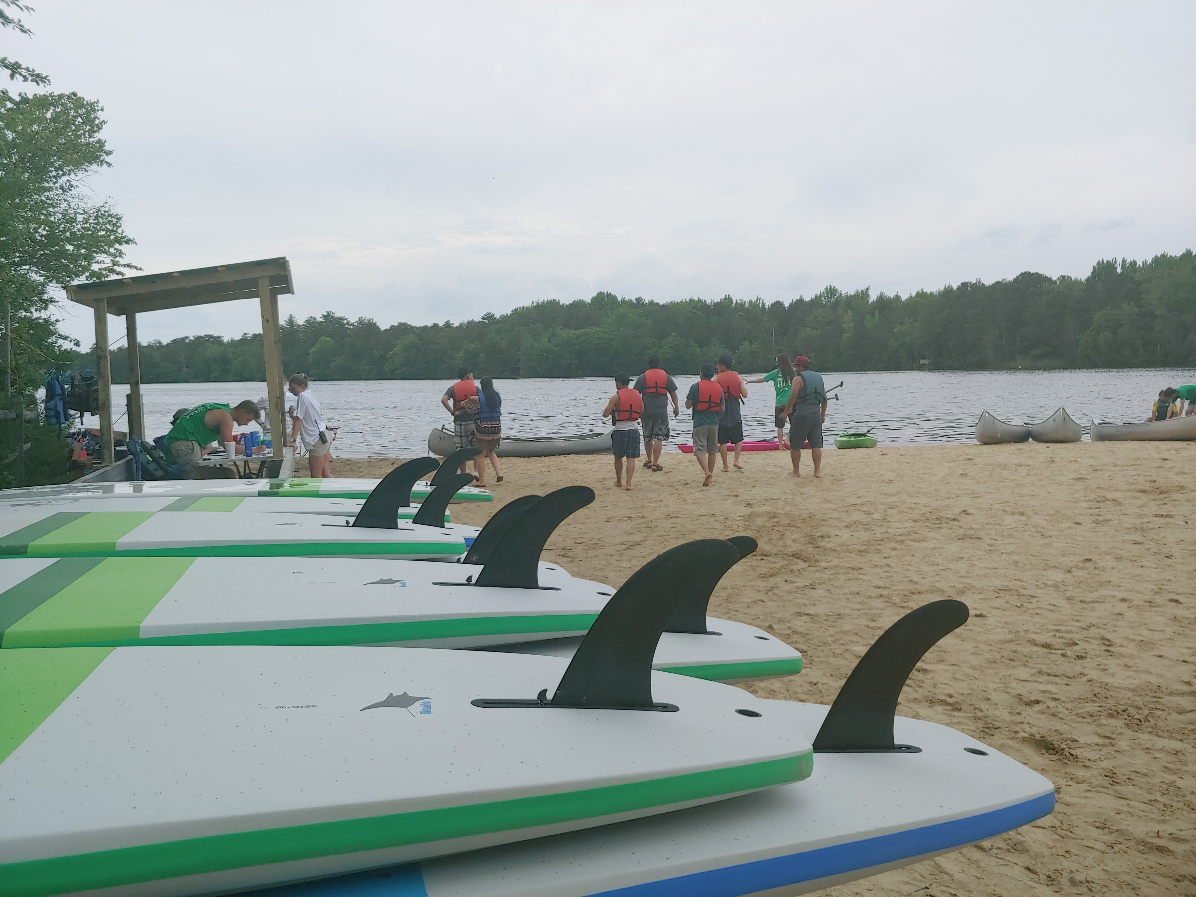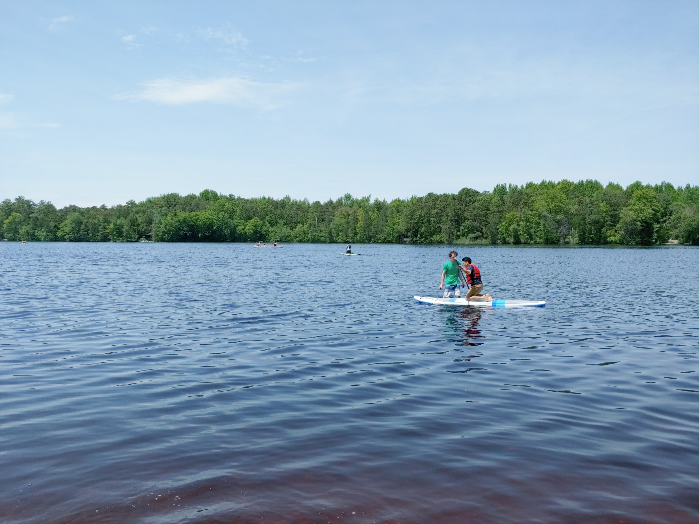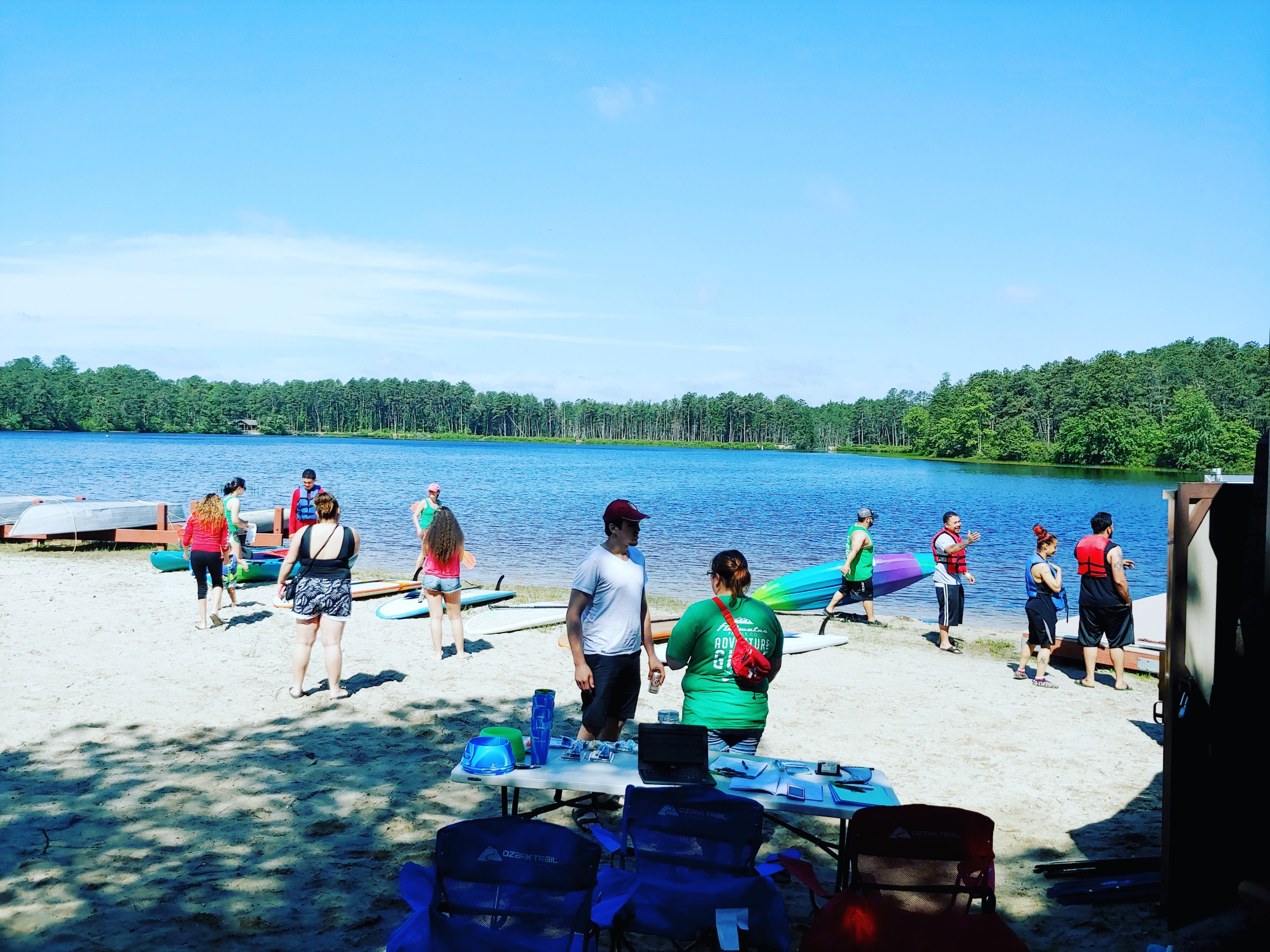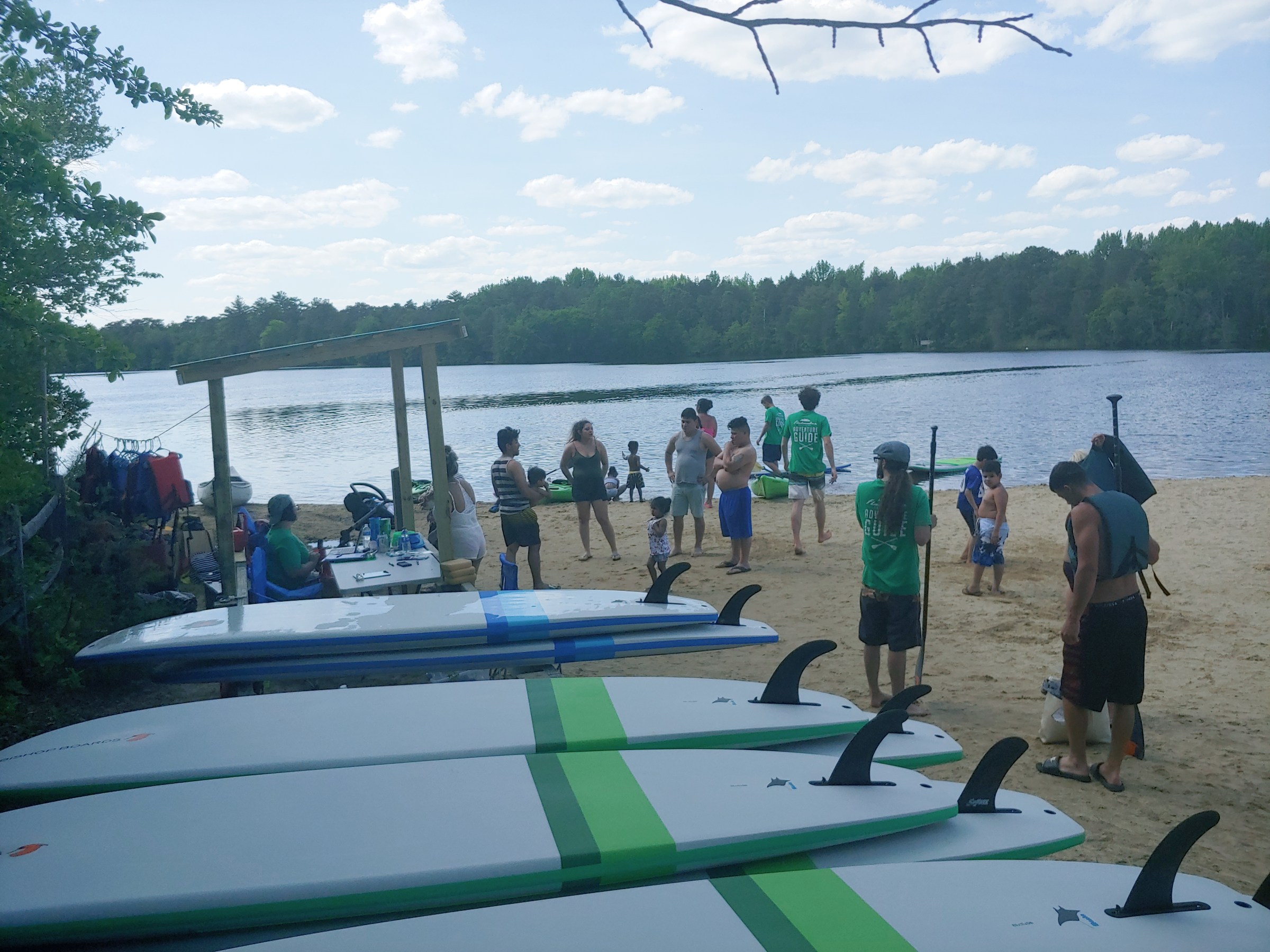 Atsion Lake is part of Wharton State Forest in Southern NJ. Atsion Lake features a recreation area with a sandy beach for swimming, a snack stand, playgrounds and other amenities. We launch right from the beach so you can explore the areas of the lake that are not open to swimming. Atsion Lake is a dammed portion of the Mullica River, and spans about 100 acres. Just across the lake are a number of cabins and campsites. This scenic location in the Pine Barrens is about 45 minutes outside of Philadelphia; a great place for either a day trip or a longer stay!